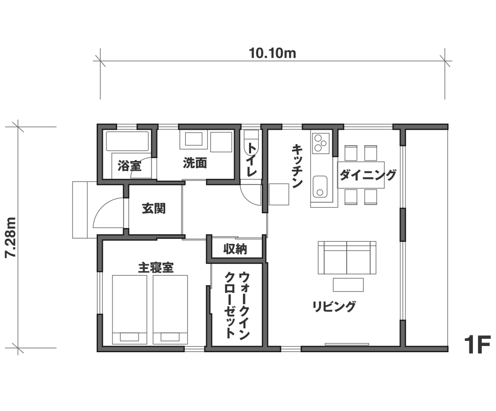 土地は決まっていたので家作りは間取りを決める段階からスタート。夫婦2人暮らしのため、開放感が楽しめつつも、使いやすい動線でコンパクトな間取りを極めました。壁は当初、木の家の内装を希望してましたが、将来的なメンテナンスを考えて白に統一。