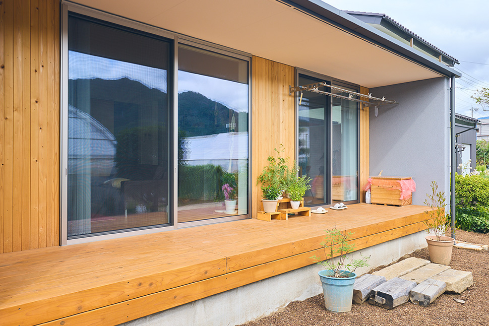 ともに長野出身というご夫婦。ご主人の実家は農家で、その敷地の一部を取り壊してこの家を建てました。今も隣の母屋にはご主人のお母様が住んでいます。