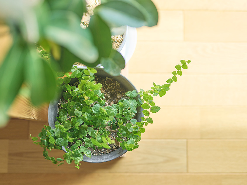 緑にもどんな家具にも合う白い壁のおかげでずっと綺麗な家を維持できる