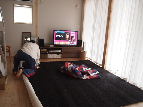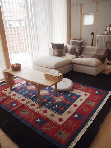 こちらは第一回目のレポートにも載せた写真ですが、このラグは無印良品さんとタッグを組んでおられますIDEEさんのものです。先に届いておりました。