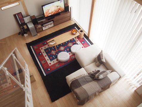 さらに二階のベッド横のスペースにも丸いラグが届きました。