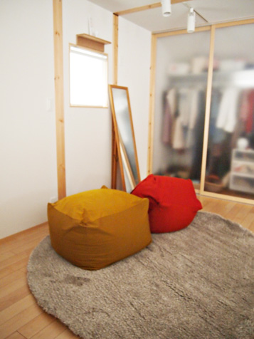 体にフィットするソファを重ねて、くつろぎスペースです。