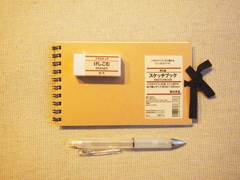 あとですねーお玉とか、スケッチブックとかシャープペンを買いました。