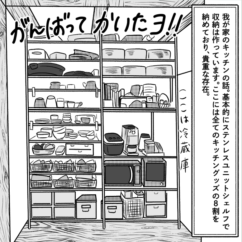 今回はステンレスユニットシェルフで作った台所の収納について。とりあえず左側…次回は右側に何を置いているかというのも紹介しますっっ! タッパーみんなどうしてるの?