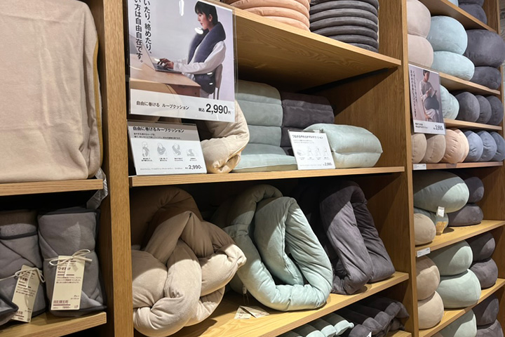 自由に巻けるループクッションというらしい。いいですね。「首に通して首当て・背当てにしたり、首に二重に巻いてネッククッションにしたり、腕に巻いてお昼寝用のクッションにしたり、さまざまな用途で使えるクッションです。」だって。便利そうですね。腰の下になんかクッション入れて寝たいですね!
