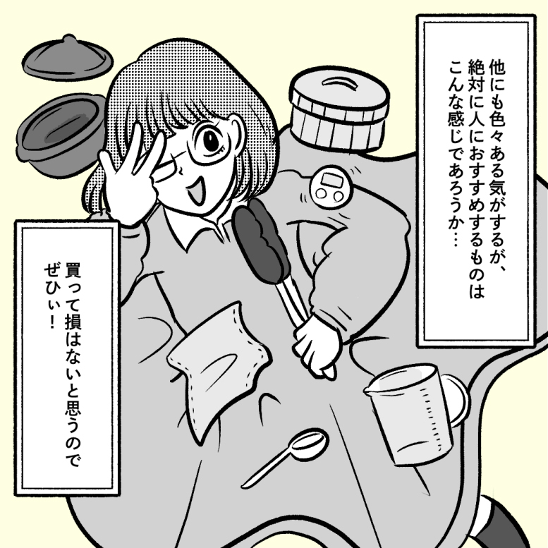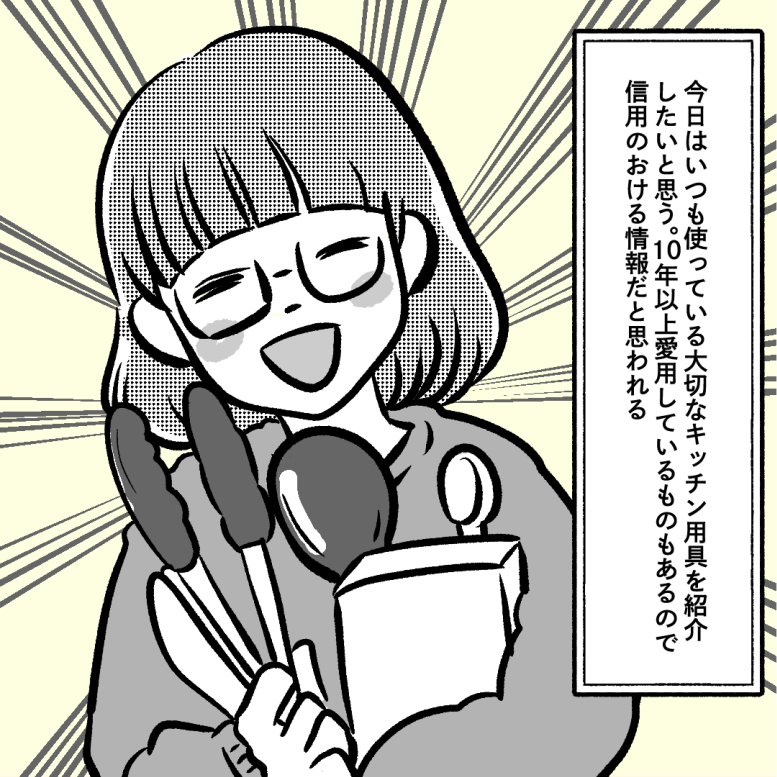 よくキッチン用具のおすすめベスト10を聞かれることがあるんですが、ぶっちゃけここに書いてあるものだけ揃えていただければ私は…満足っ! 他にもおすすめはあるんだけどキリがなさすぎるから、特におすすめのキッチン用具たちを紹介ですっ。