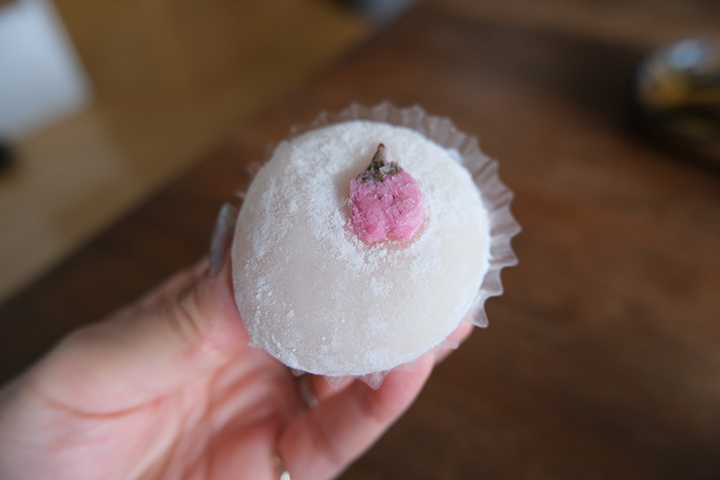 見た目もとても美しく、お客さまが来たときに出すのもいい感じです。とってもおしゃれです。桜の葉っぱを塩漬けするということから、 桜風味のお菓子というのはちょっとしょっぱい感じに仕上がりますね。桜の中にほんのり感じる塩気がたまりませんね。だから桜のお菓子は好きなんだー。